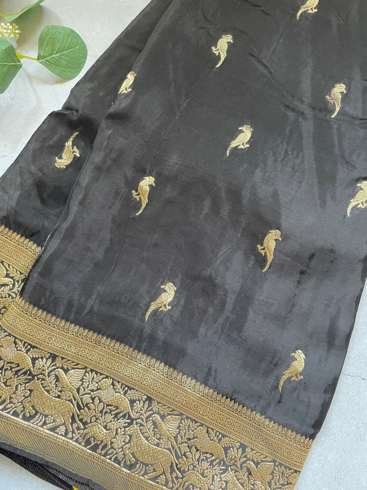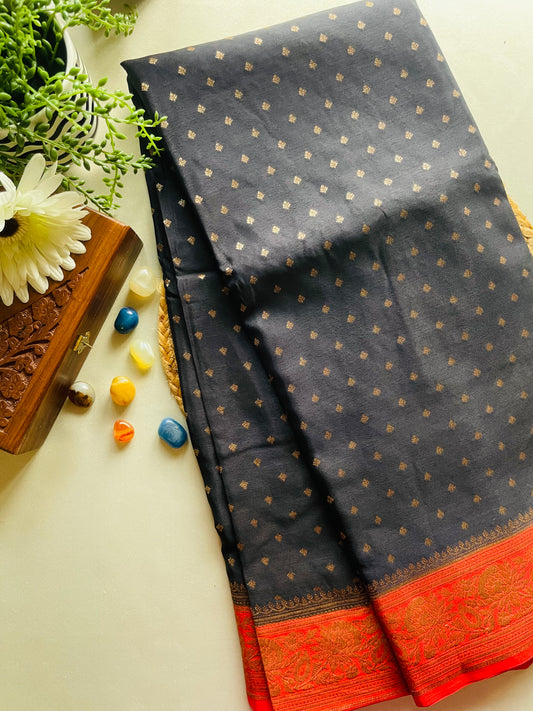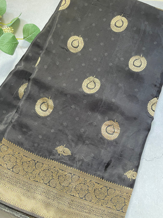 Dark Grey Pure Tissue Silk Saree