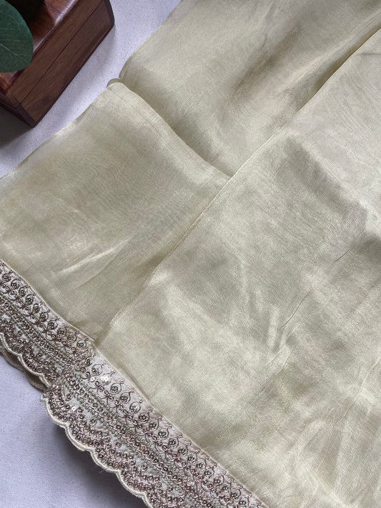 Off White border Lace Tissue Saree