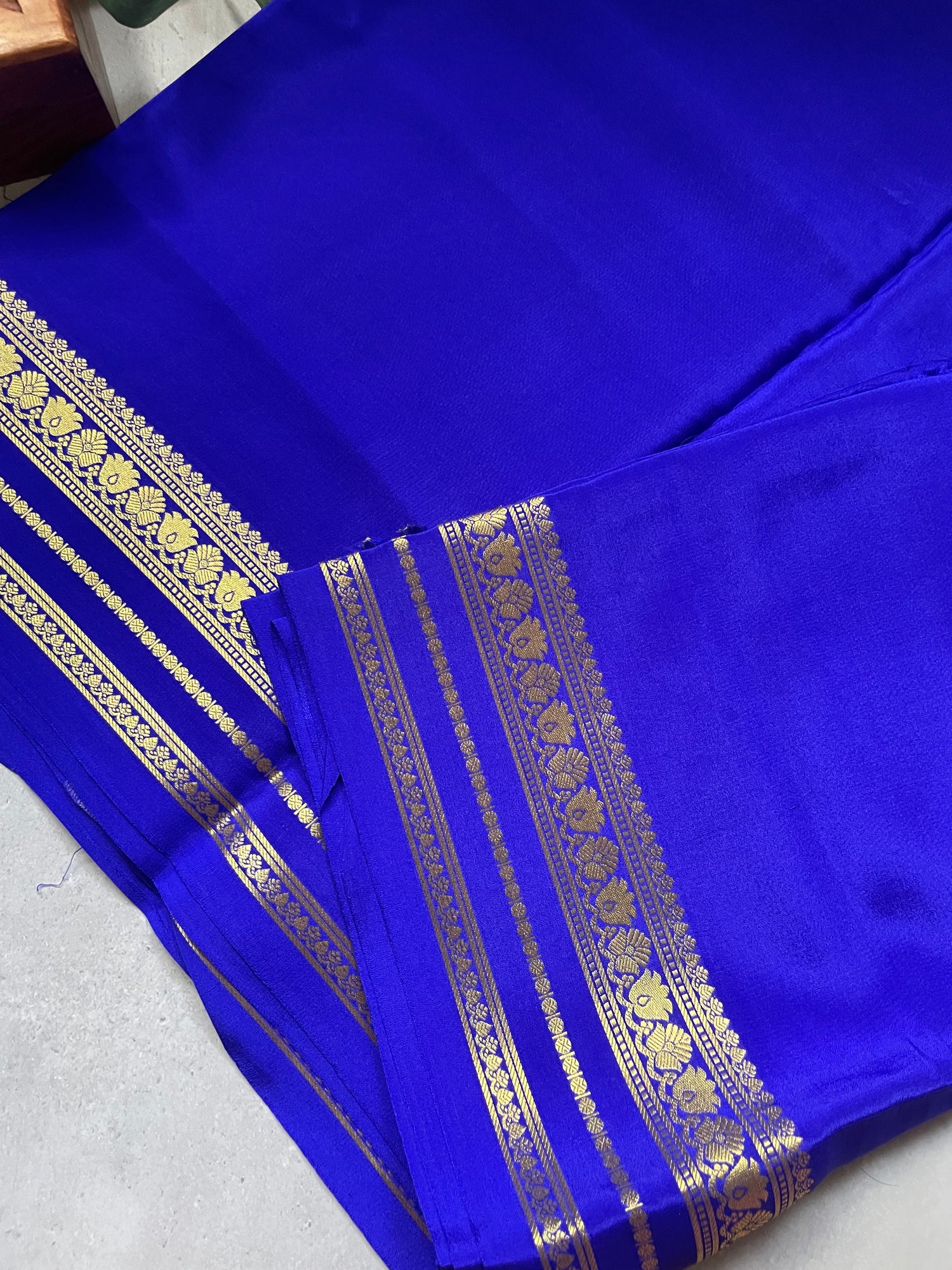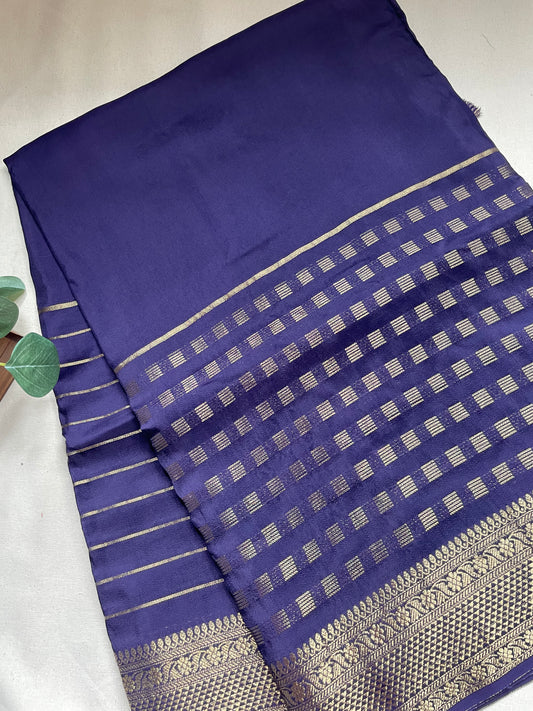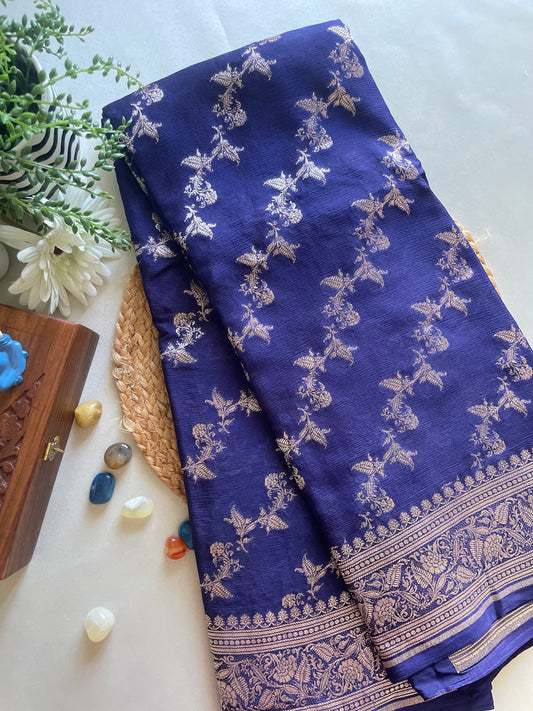 Navy Blue Banarai Pure Crepe Silk Saree