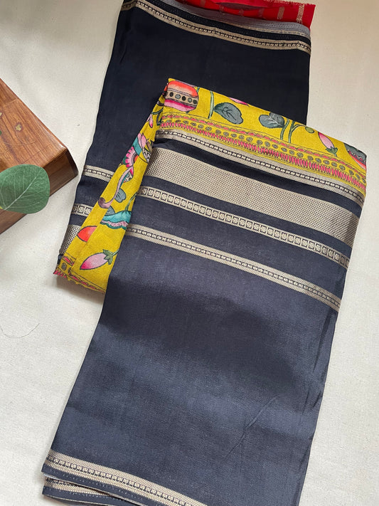 Black N Yellow Satin Crepe(02) Silk Saree
