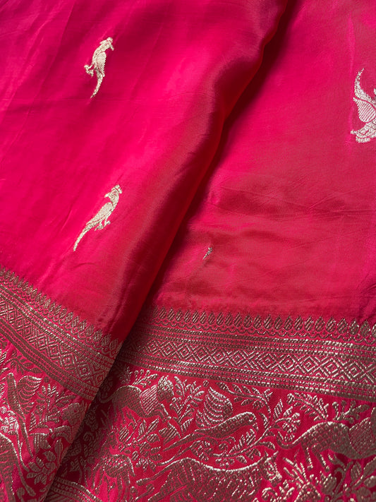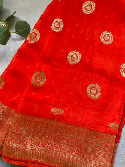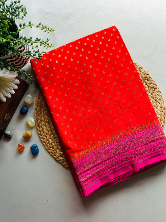 Orange n Pink Banarasi Pure Crepe Georgette Saree