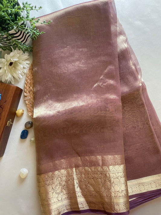 Purple Lace border Tissue Saree
