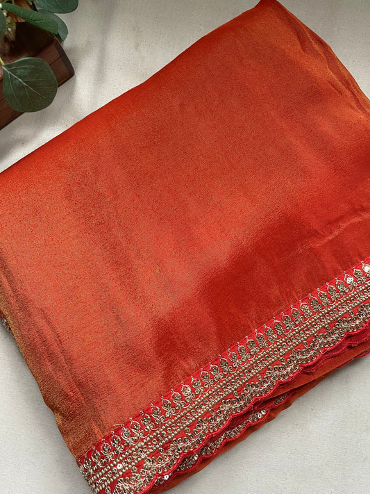 Orange Lace border Tissue Saree
