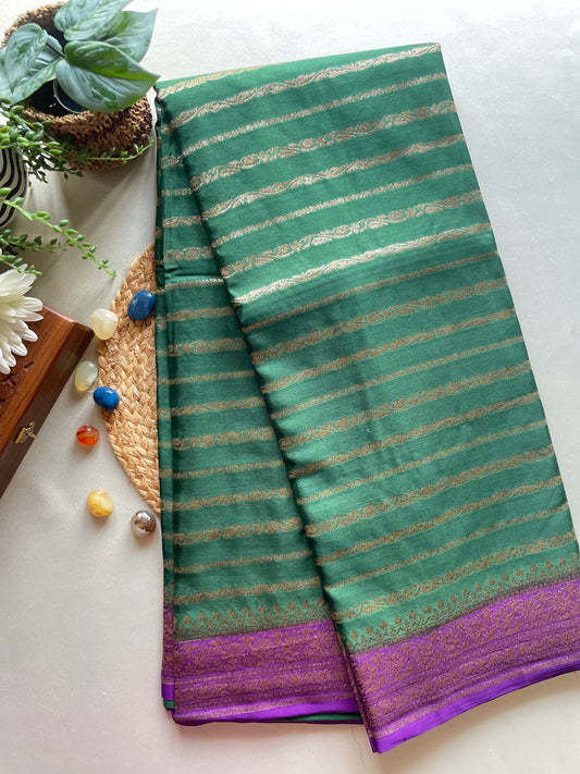 Green n Purple Stripes Banarasi Pure Crepe Georgette Saree