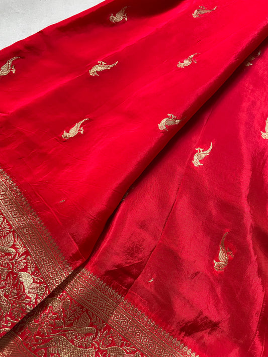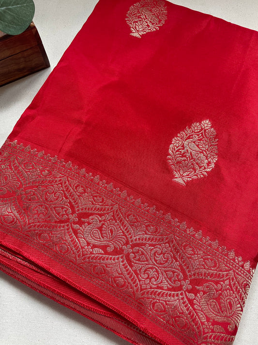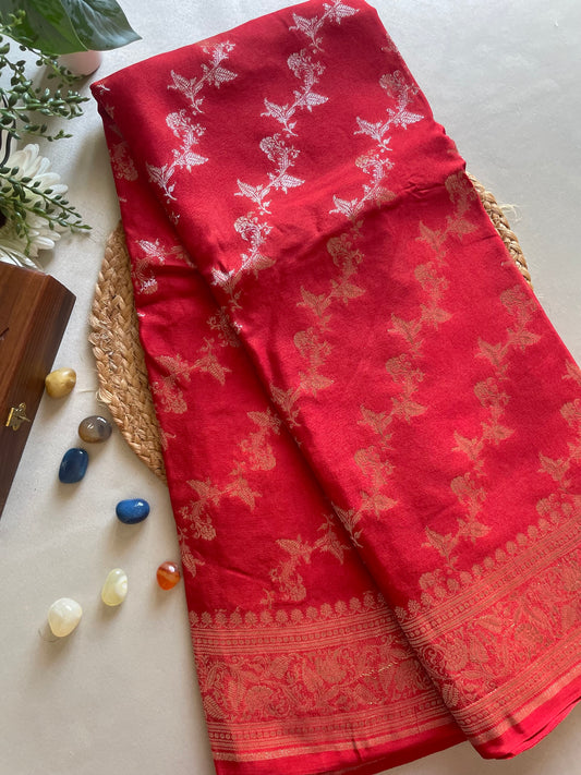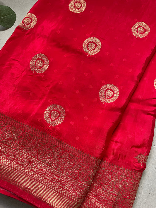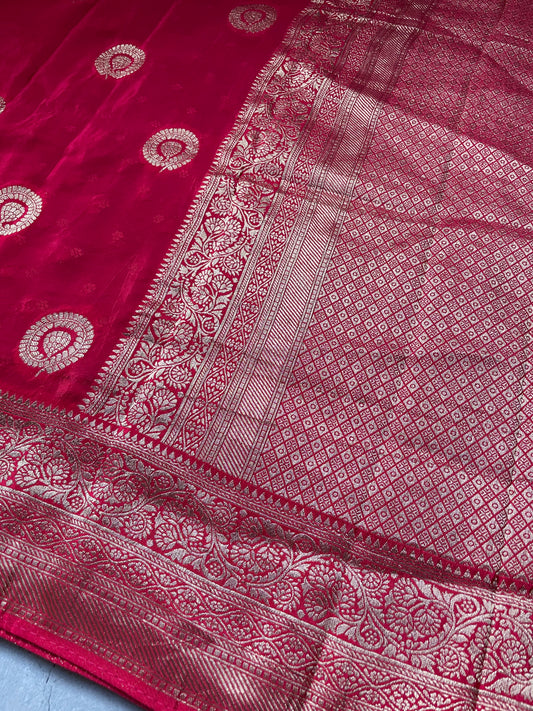 Red Banarai Pure Crepe Silk Saree