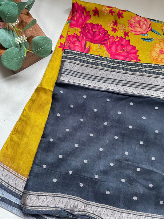 Yellow Printed Viscose Crepe Saree
