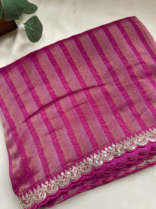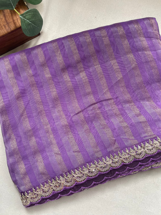 Purple Stripe Lace border Tissue Saree