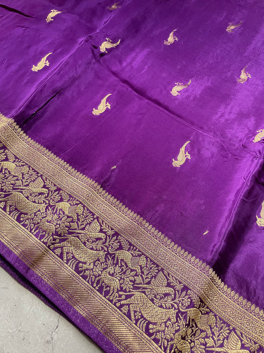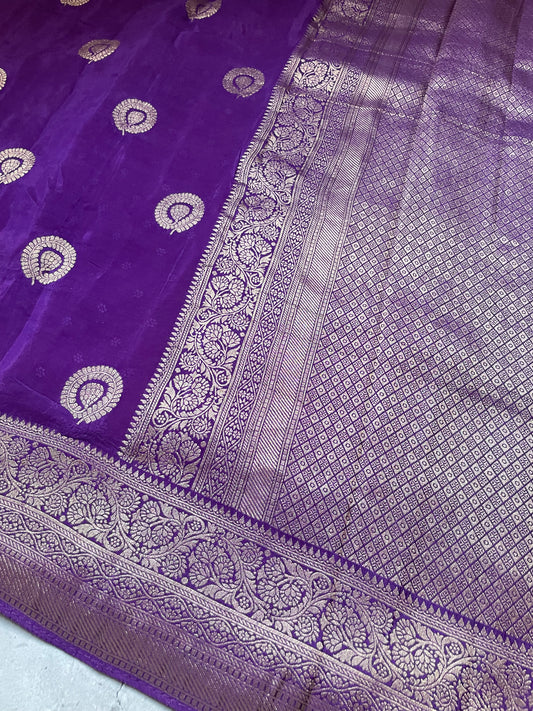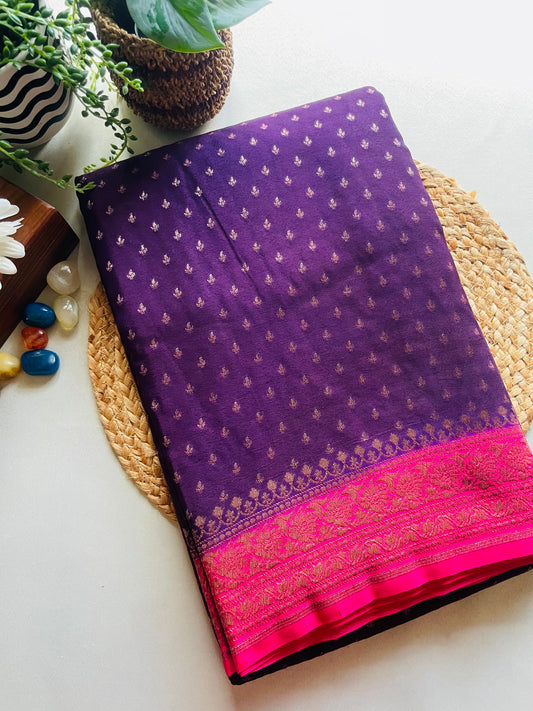 Purple n Pink Banarasi Pure Crepe Georgette Saree
