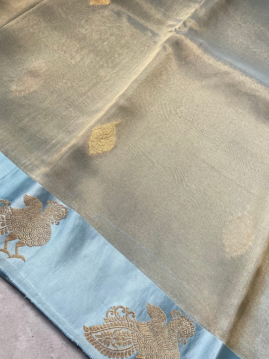 Light Blue Satin Border Tissue Silk Saree