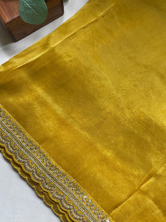 Yellow Lace border Tissue Saree