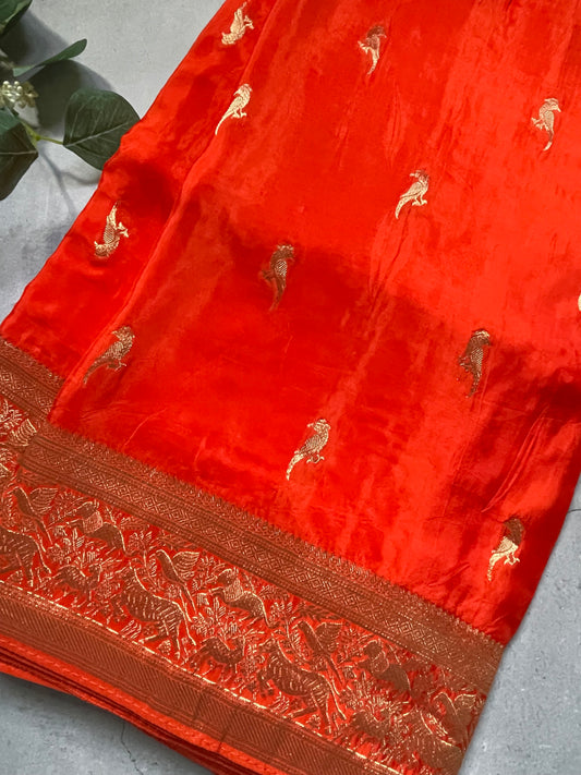 Orange n Brown 02 Banarasi Pure Crepe Georgette Saree