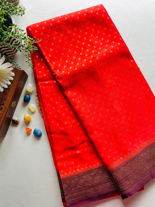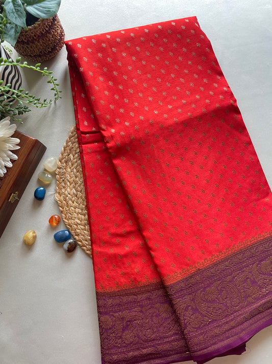 Orange n Wine Banarasi Pure Crepe Georgette Saree
