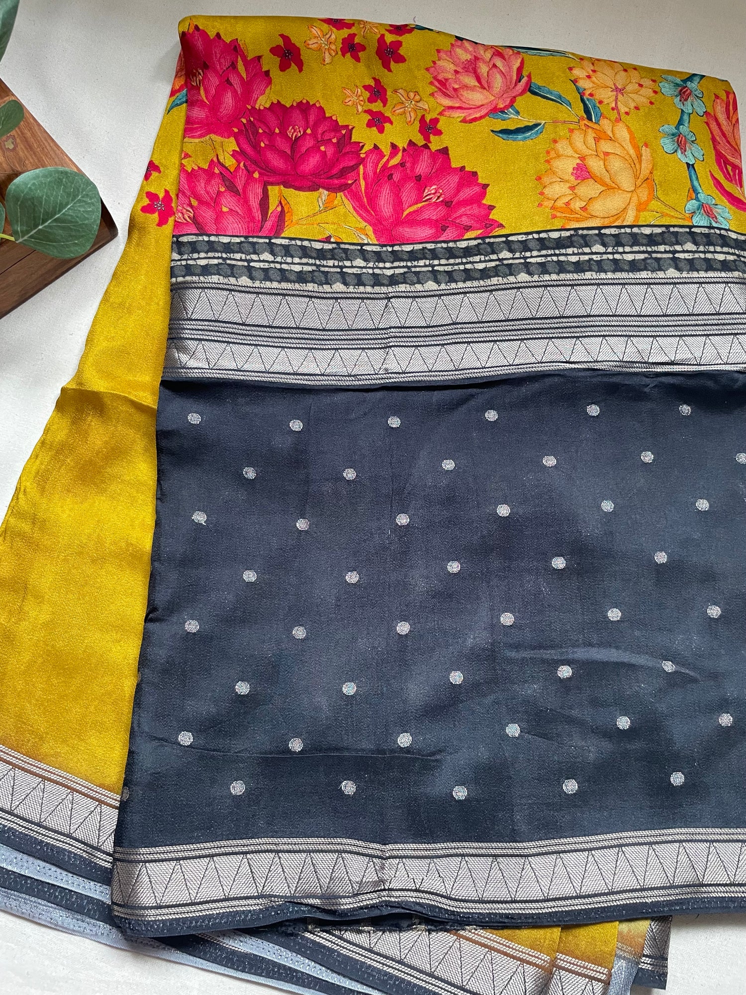 Black N Yellow Satin Crepe(02) Silk Saree