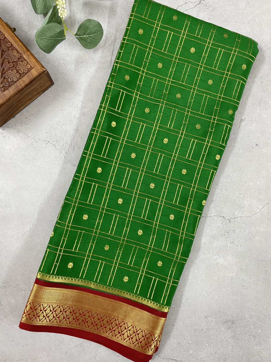 Green N Maroon Checks Pure Mysore Crepe Silk Saree