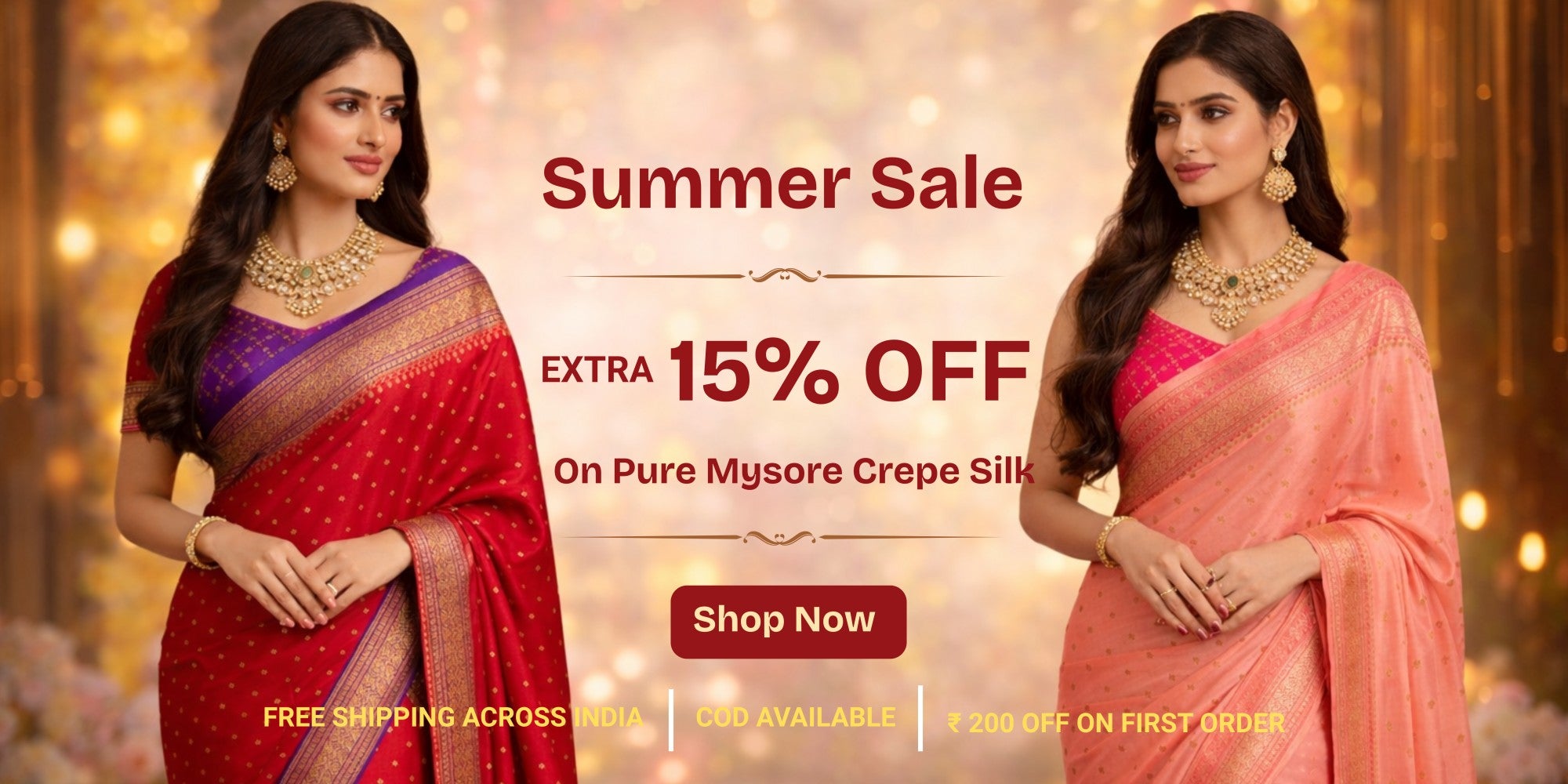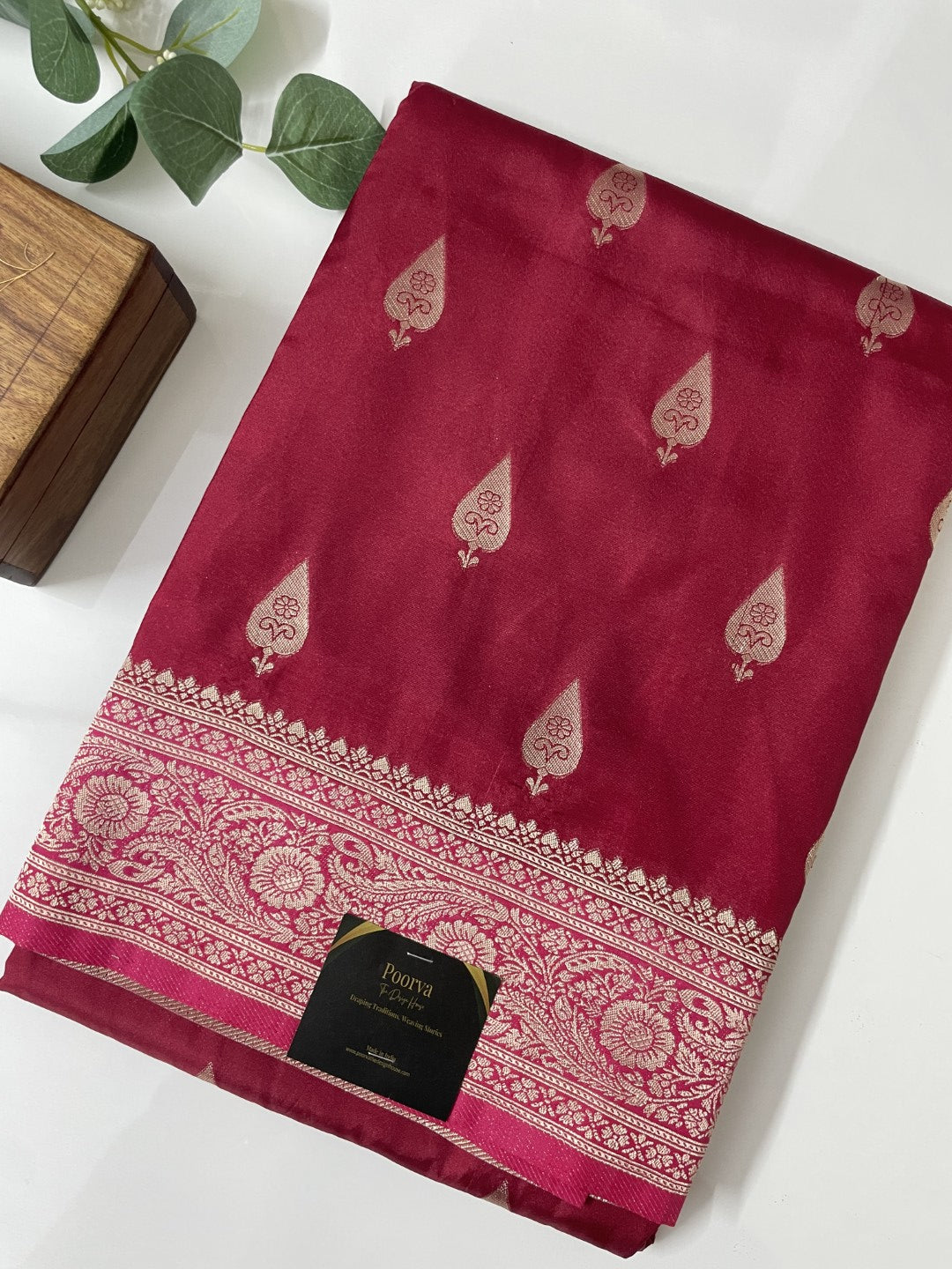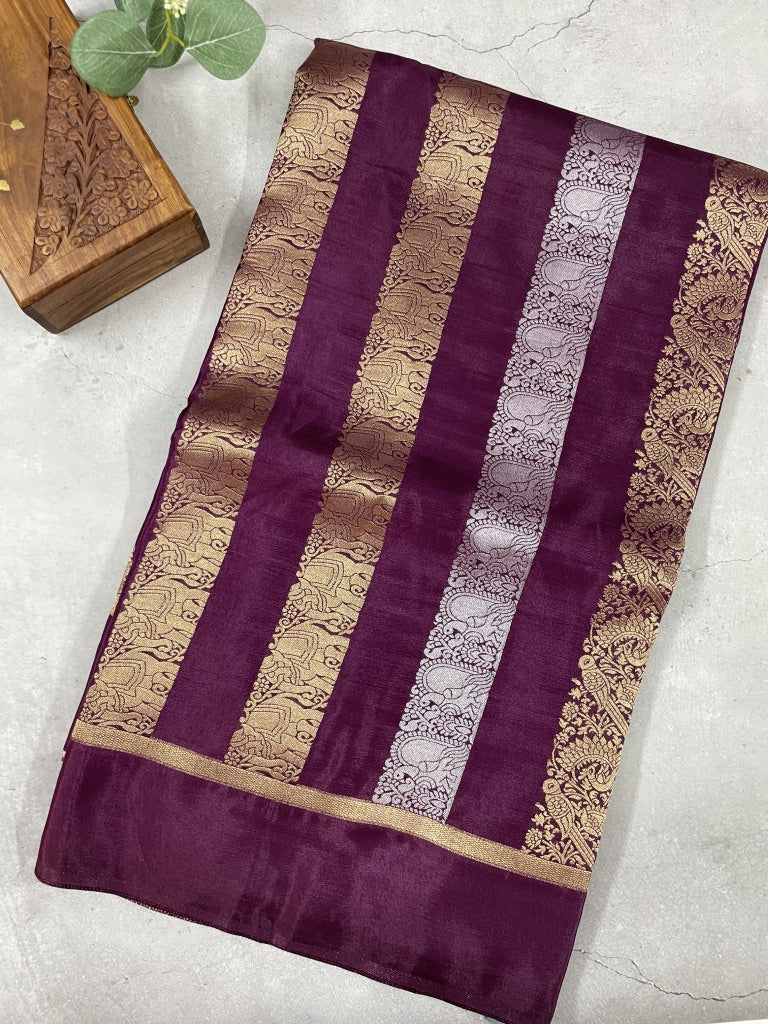 Peach N Wine Pure Mysore Crepe Silk Saree