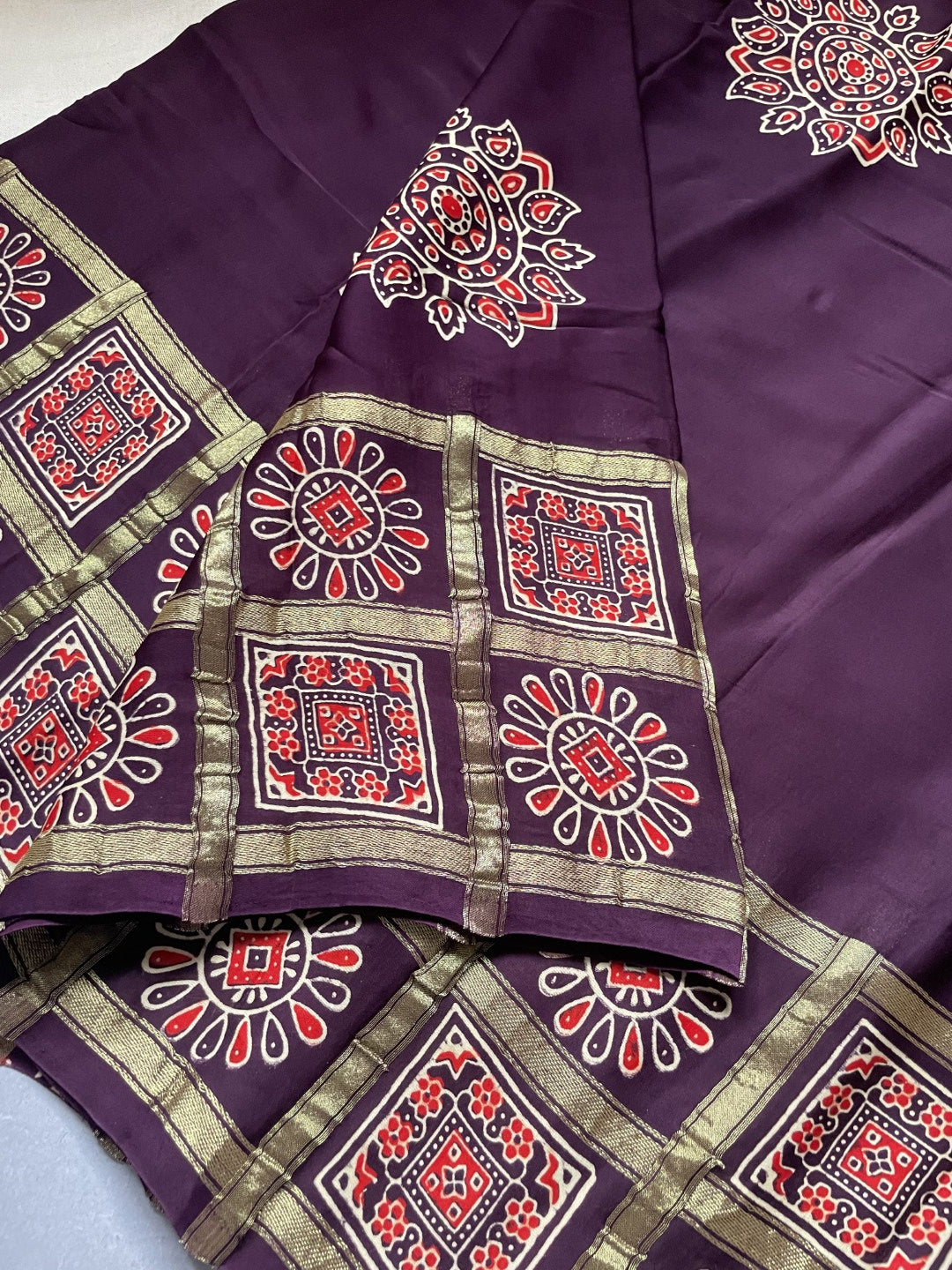 Red Gharchola border Modal Silk Saree