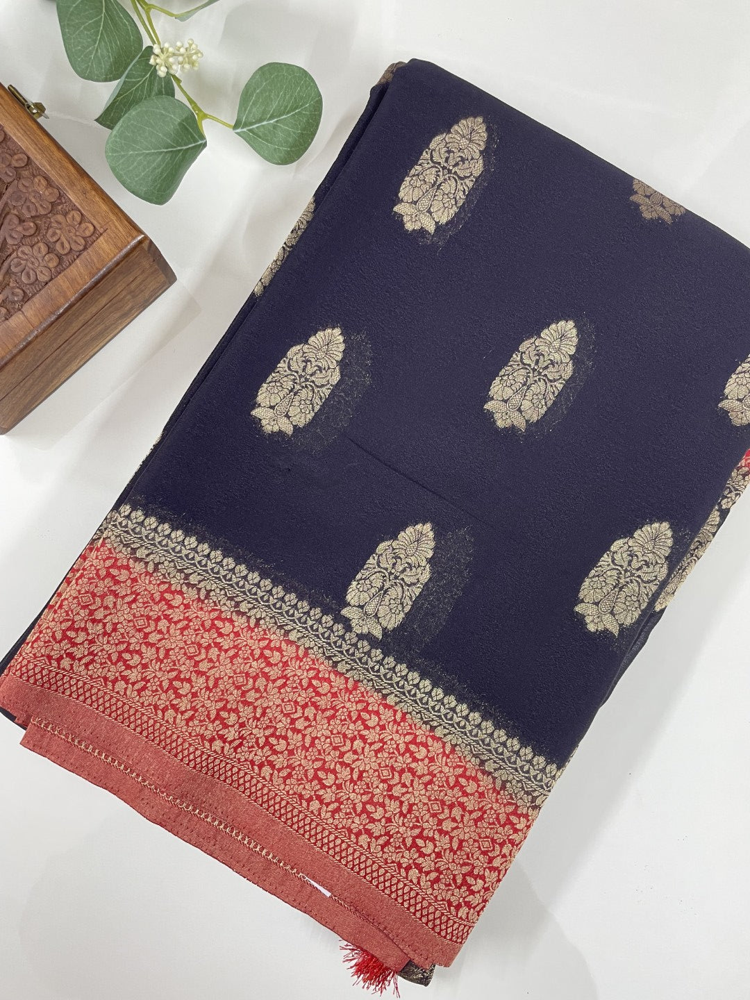 Black N Red Soft Crepe Georgette Saree
