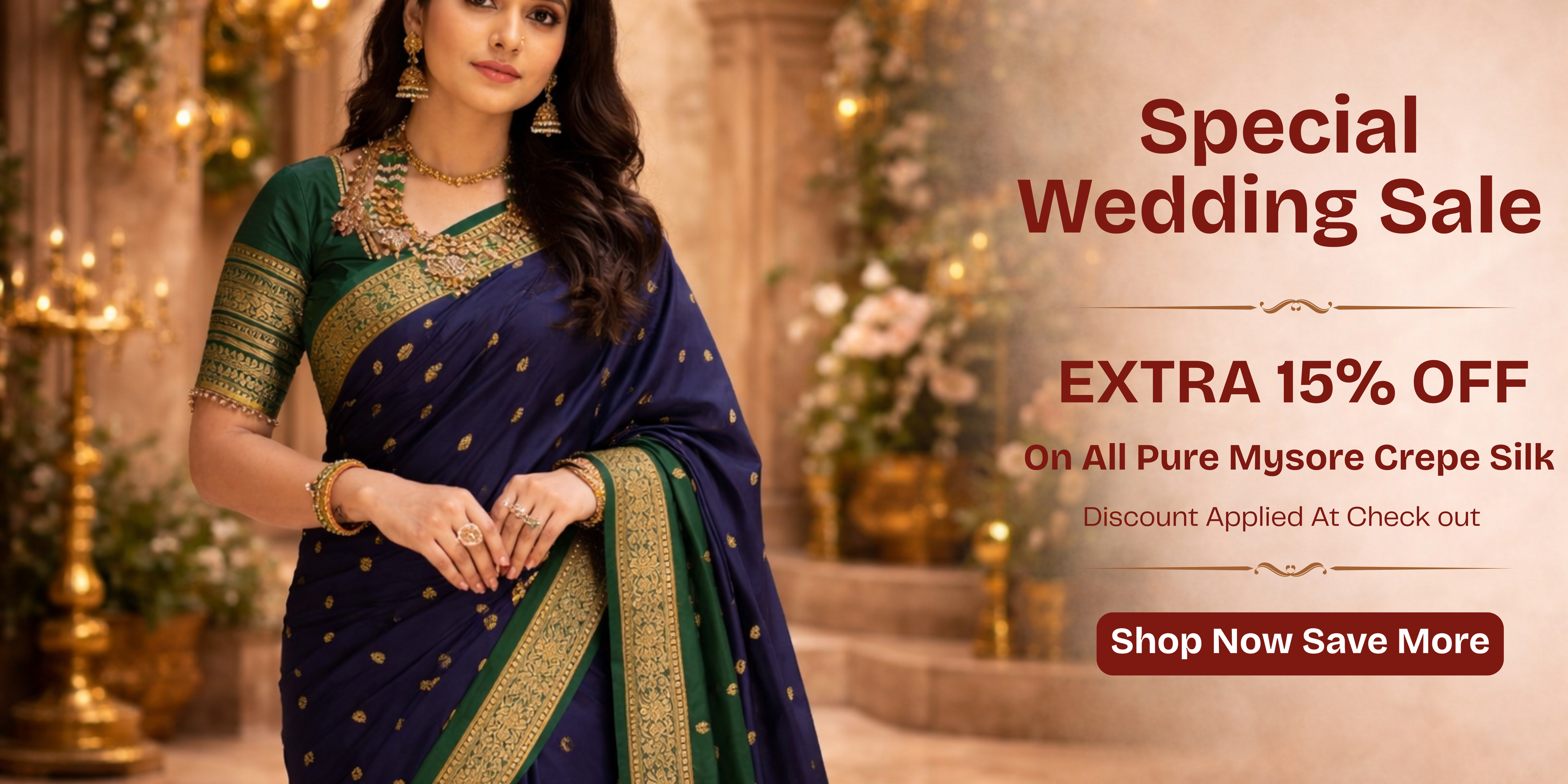 Peacock Blue Pure Mysore Crepe Silk Saree