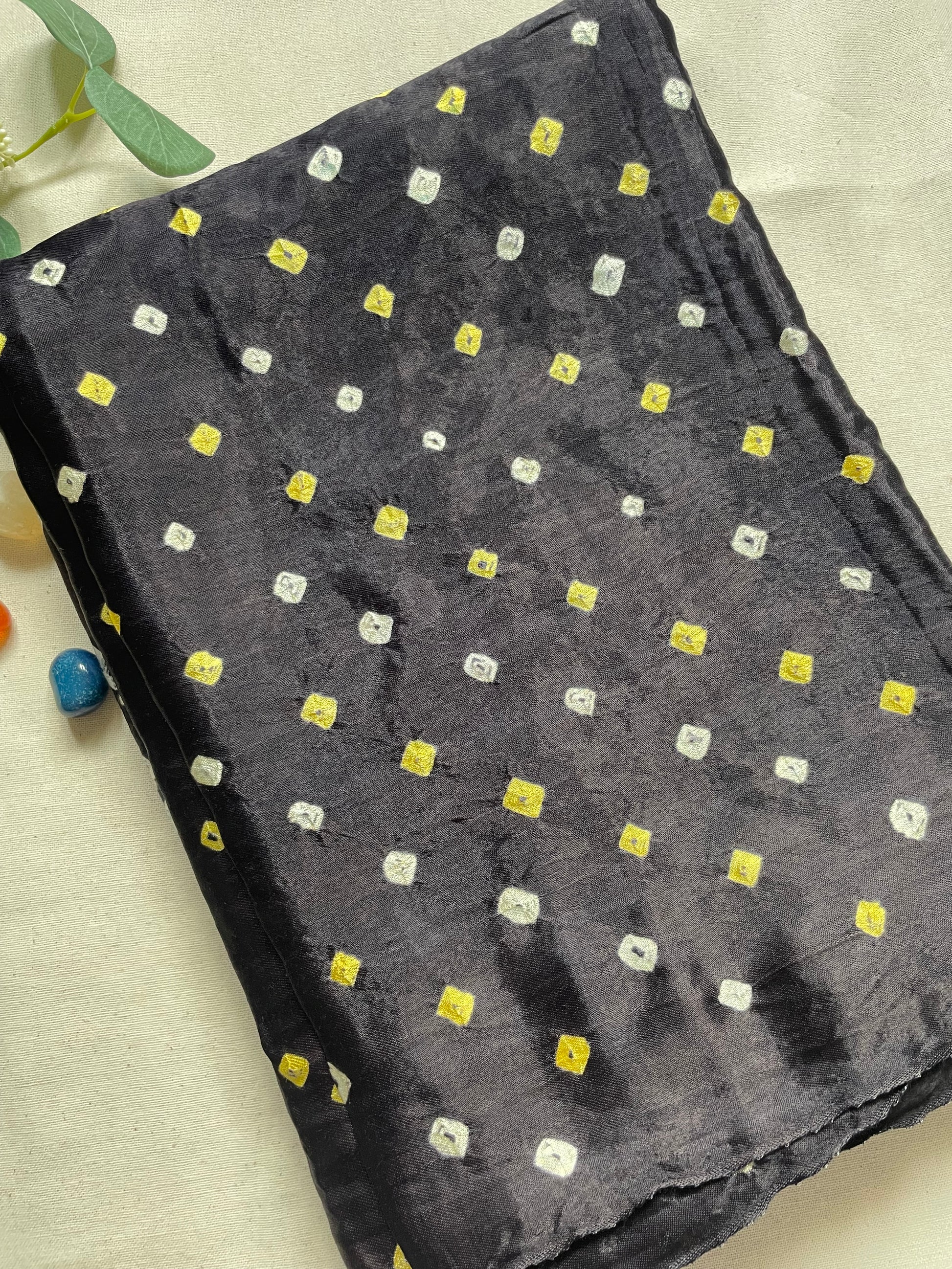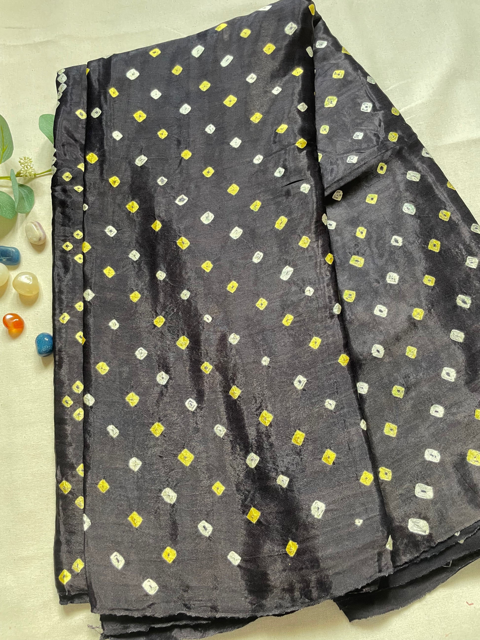 Black Hand Bandhini Modal Silk Saree