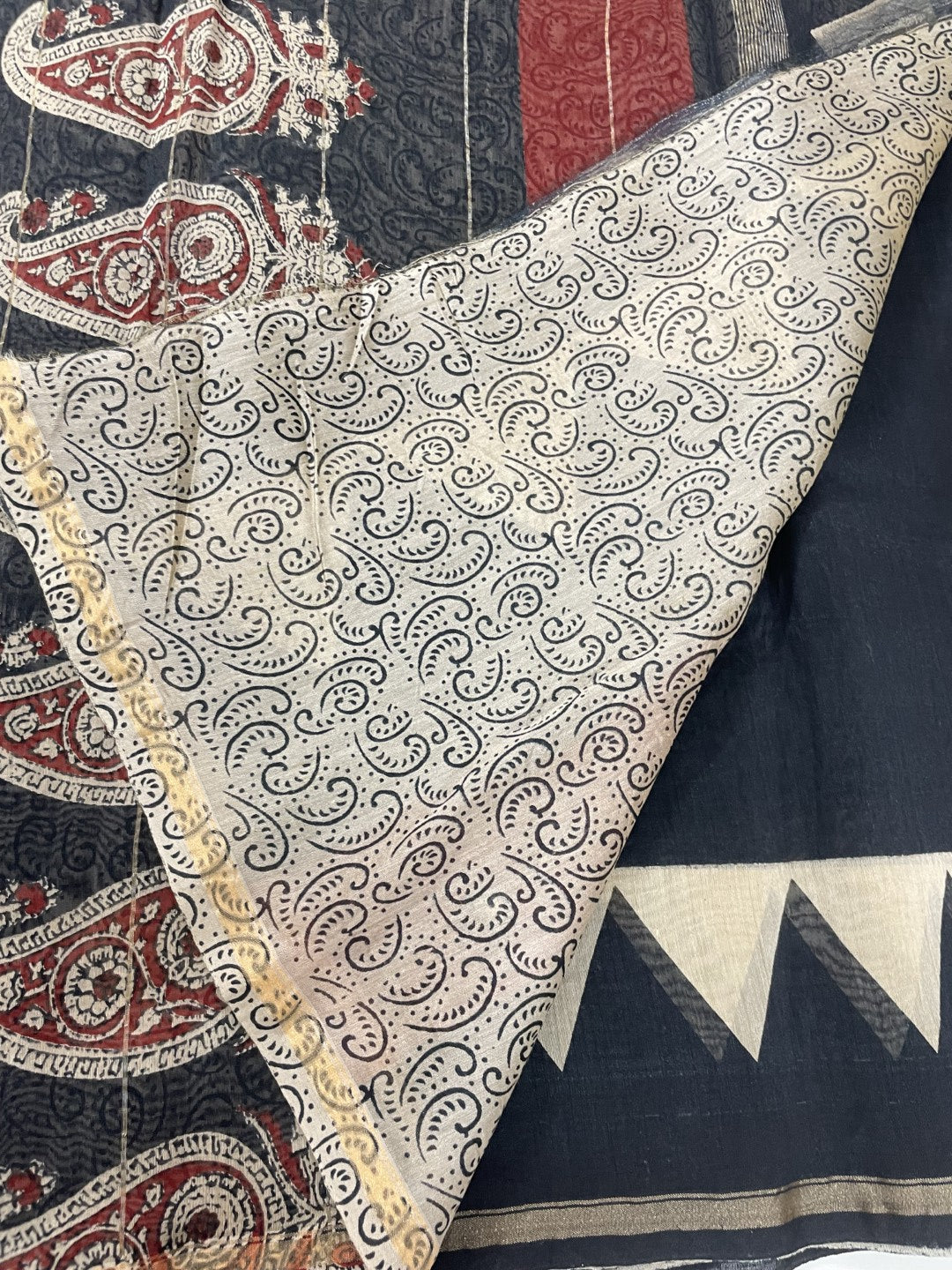 Black Handblock Chanderi Silk Saree