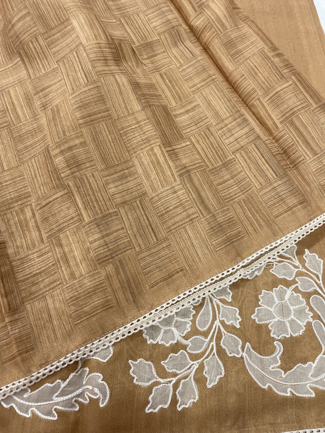 This Saree is an ethereal blend of elegance and contemporary charm. Crafted from Semi Tussar fabric, this saree drapes beautifully, offering a soft graceful texture.