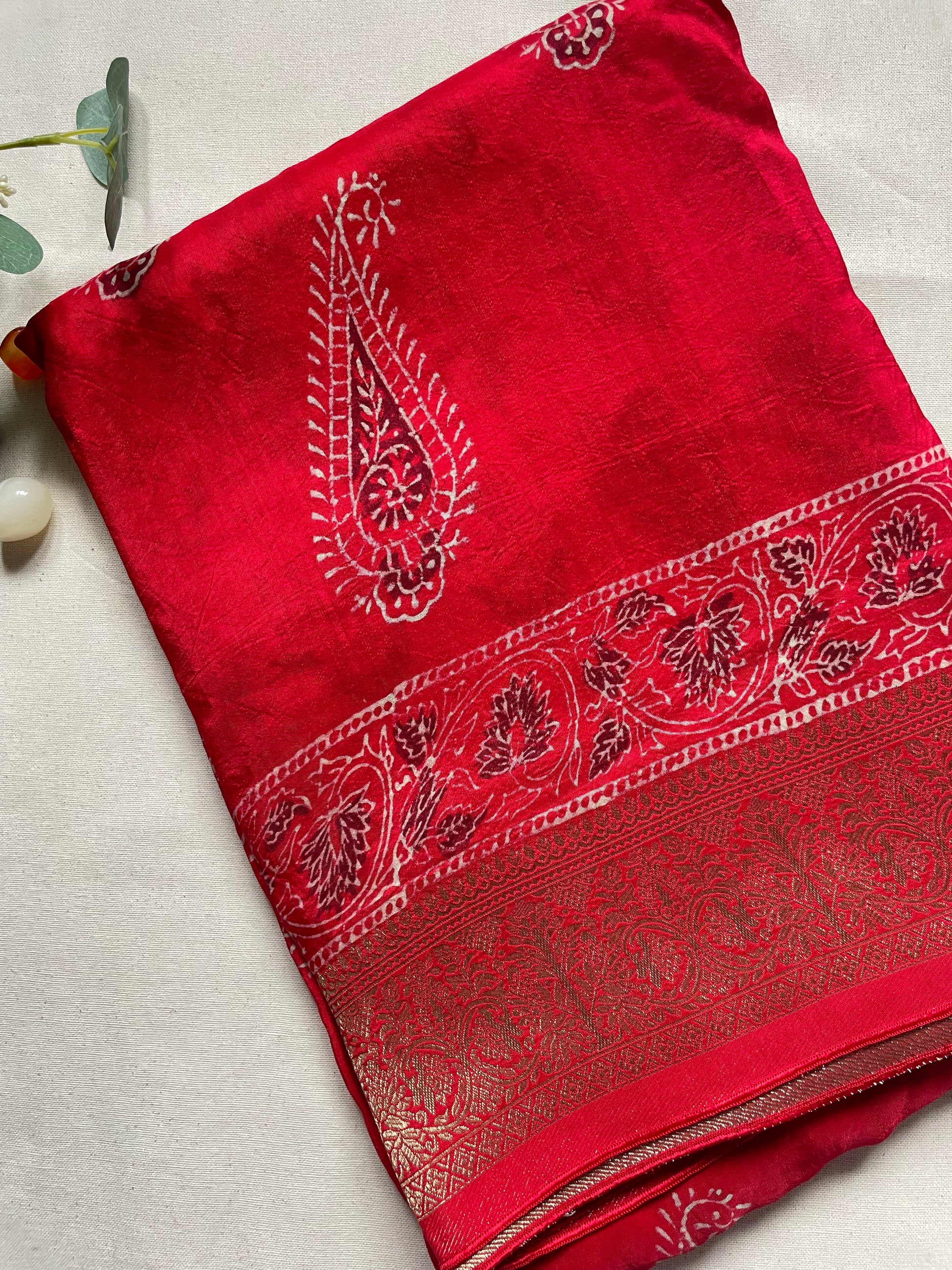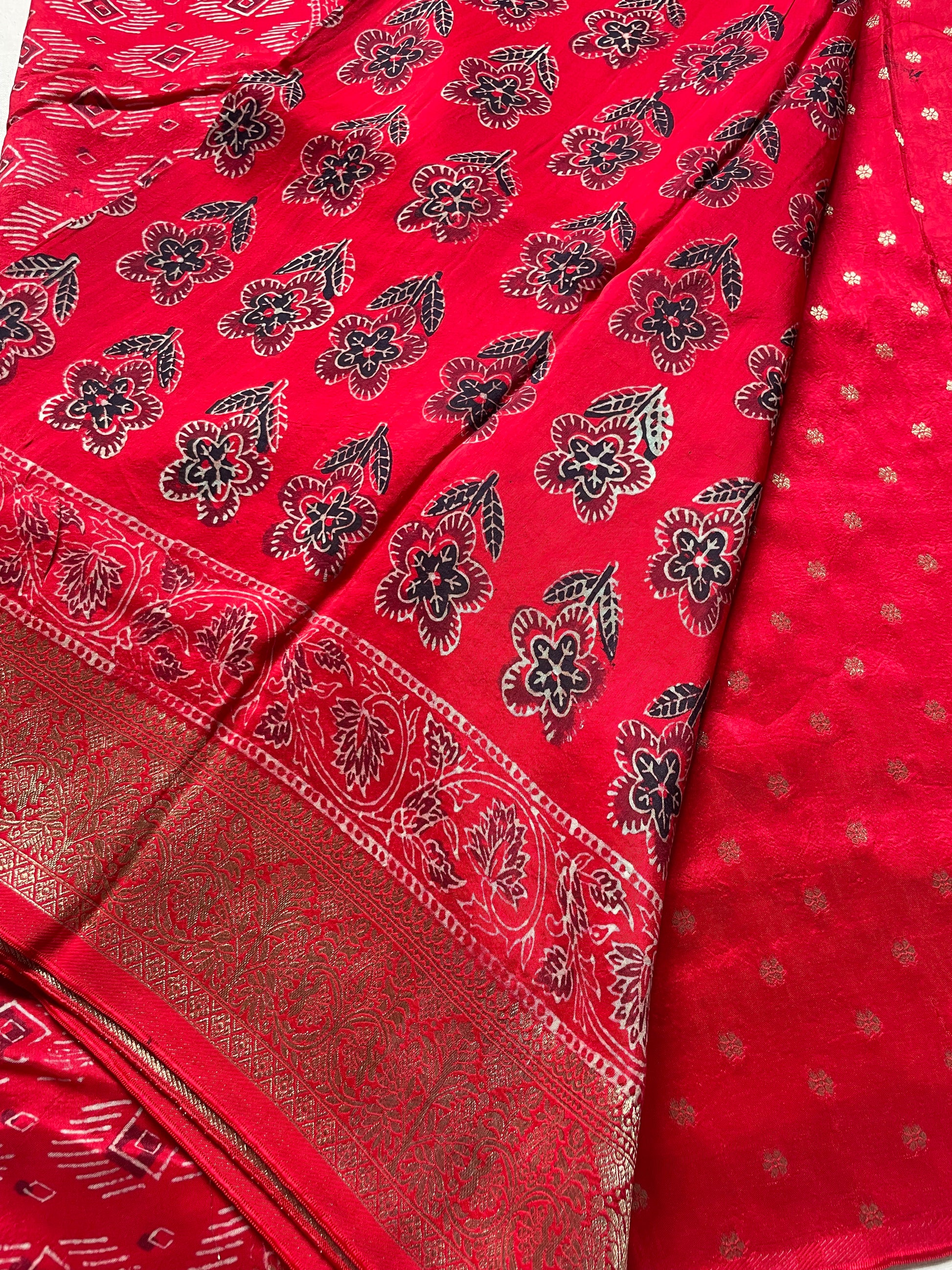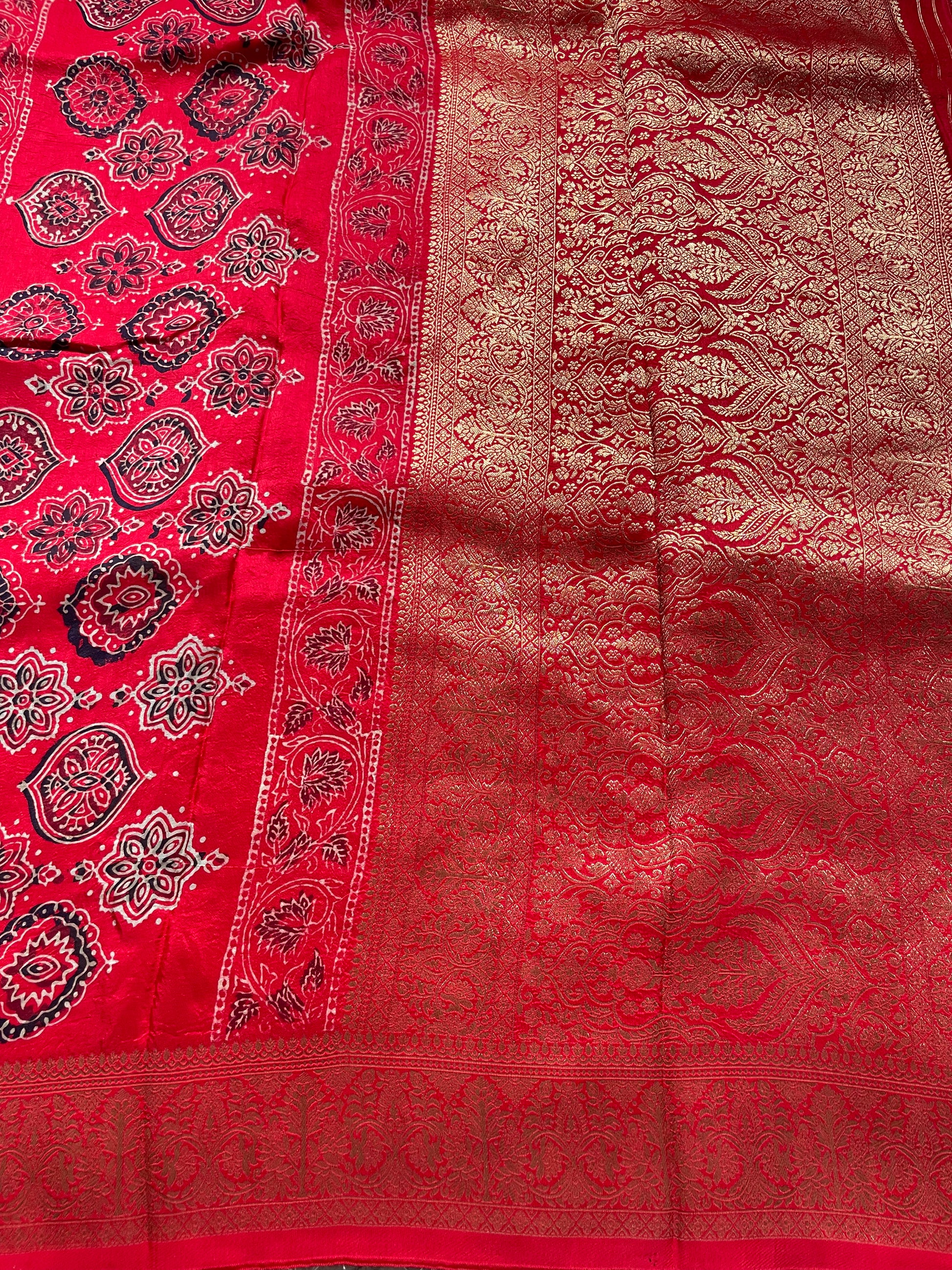 Red Ajrakh Dola Silk Saree